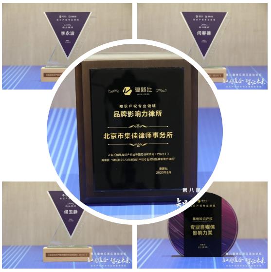 フォーラムでは、主催者の律新社が「精品知識産権法律服務品牌指南(最高レベル知的財産権法律サービスブランドガイド)(2023)」を初めて発表し、かつ申告と調査研究に基づき、専門家評議審査會、同業者の評価、顧客の評価などの多岐にわたる情報を総合し、専門サービスおよびブランドパフォーマンスに基づき、律新社2023年度知的財産権専門分野「ブランド影響力法律事務所」および「ブランドの星」弁護士を発表した。北京市集佳法律事務所は卓越した実力と豊富な訴訟経験により「ブランド影響力法律事務所」ランキングに選出され、集佳法律事務所主任、パートナーの李永波弁護士とパートナーの閆春徳弁護士が「実力弁護士」栄譽稱號を授與され、パートナーの侯玉靜弁護士が「匠心(クラフトマンシップ)弁護士」栄譽稱號を授與され、「集佳知識産権」公式アカウントが「専門セルフメディア影響力賞」を受賞した。