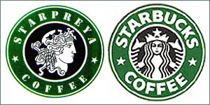 這是星巴克第二次敗給韓國的Elpreya。 2005年3月,星巴克控訴Elpreya的行為直接侵犯了其已注冊的標識,但被受理法院駁回。星巴克的標識中采用了美人魚圖案,并已有一定的認知度, Starpreya則使用了一個女神的形象。 法院認為,由于雙方的標識含有不同的元素,很難認定兩者存有相似性。