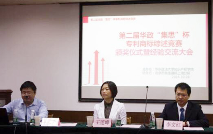 由華東政法大學知識產權學院主辦、北京市集佳律師事務所上海分所提供支持的第二屆“集思”杯專利商標綜述競賽圓滿落下帷幕,2016年10月28日,競賽頒獎儀式暨經驗交流大會在華東政法大學舉行。