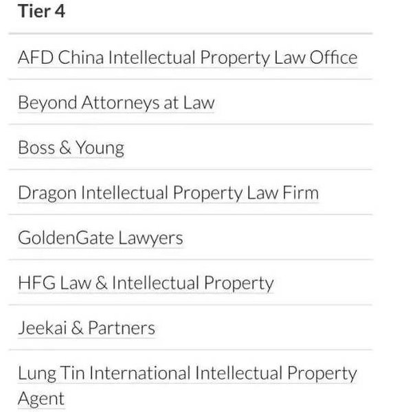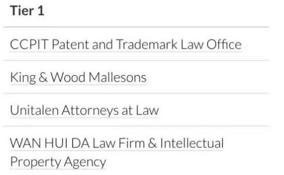 近日,國際著名知識產權媒體《知識產權管理》雜志(Managing Intellectual Property)公布“2016年知識產權之星商標業務排行榜”(IP Stars 2016 Trade Mark Rankings)。集佳同時榮登商標爭議業務及商標訴訟業務中國區第一梯隊(Tier 1)。