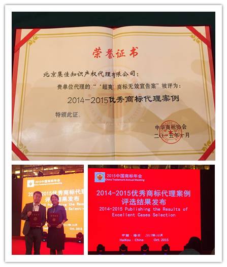 10月18日上午,由中華商標(biāo)協(xié)會(huì)和海口市政府主辦的2015中國(guó)國(guó)際商標(biāo)品牌節(jié)·商標(biāo)優(yōu)秀案例評(píng)析論壇在海南國(guó)際會(huì)議中心召開(kāi)。集佳代理的“超爽”無(wú)效宣告案件入選中華商標(biāo)協(xié)會(huì)評(píng)選的22件優(yōu)秀商標(biāo)案例,被評(píng)為“2014-2015優(yōu)秀商標(biāo)代理案例”。