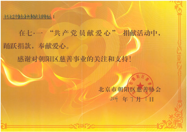 2014年是中國共產(chǎn)黨成立93周年,是全面貫徹黨的十八屆三中全會(huì)精神、深入開展黨的群眾路線教育實(shí)踐活動(dòng)的重要一年。為充分發(fā)揮共產(chǎn)黨員的先鋒模范作用,集佳律師事務(wù)所積極響應(yīng)朝陽區(qū)律協(xié)黨委開展“共產(chǎn)黨員獻(xiàn)愛心”捐款活動(dòng)的號(hào)召,面向全所黨員律師、入黨積極分子組織愛心捐獻(xiàn)活動(dòng)。