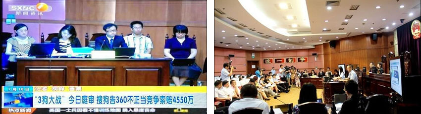 由北京市集佳律師事務(wù)所張亞洲律師、周丹丹律師代理的北京搜狗信息服務(wù)有限公司、北京搜狗科技發(fā)展有限公司與被告北京奇虎科技有限公司、奇虎三六零軟件(北京)有限公司不正當(dāng)競(jìng)爭(zhēng)糾紛一案,于7月18日上午在陜西省西安市中級(jí)人民法院公開開庭審理。搜狗公司向兩被告索賠4500萬元的經(jīng)濟(jì)損失及50萬元的案件支出費(fèi)用,庭審后,雙方表示愿意調(diào)解。