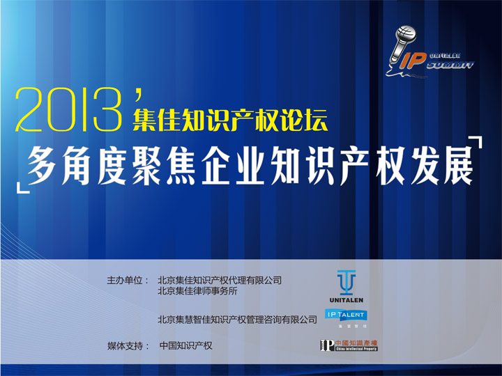 “2013’集佳知識產權論壇——多角度聚焦企業知識產權發展”將于2013年10月17-18日在北京日壇賓館報告廳舉辦,誠邀企業界代表參加。
