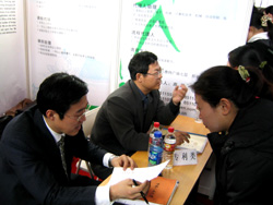 集佳特色鮮明的招聘展臺                         集佳招聘人員與求職者親切交流