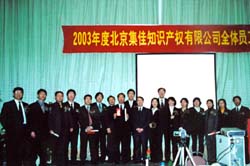 2003年,對(duì)于集佳來說,是向國(guó)際化企業(yè)邁進(jìn)的關(guān)鍵一年,集佳人上下同心、拼搏奮進(jìn),戰(zhàn)勝了“非典”對(duì)我們的巨大挑戰(zhàn)和代理機(jī)構(gòu)放開的嚴(yán)峻考驗(yàn),再次成為商標(biāo)代理量的全國(guó)第一。集佳合伙人會(huì)議主席于澤輝在2003年度工作報(bào)告中,詳細(xì)闡述了集佳在過去的一年里取得的成績(jī)和進(jìn)步,按部門總結(jié)了2003年工作的優(yōu)勢(shì)和不足,并詳細(xì)分析了行業(yè)前景、國(guó)際環(huán)境和集佳的優(yōu)勢(shì)與發(fā)展?jié)摿Γ辜讶藢?duì)在5年內(nèi)把集佳發(fā)展成為世界前100名知識(shí)產(chǎn)權(quán)代理機(jī)構(gòu)的目標(biāo)充滿信心。