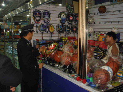 工商執(zhí)法人員進(jìn)行檢查 現(xiàn)場(chǎng)查獲的侵權(quán)產(chǎn)品