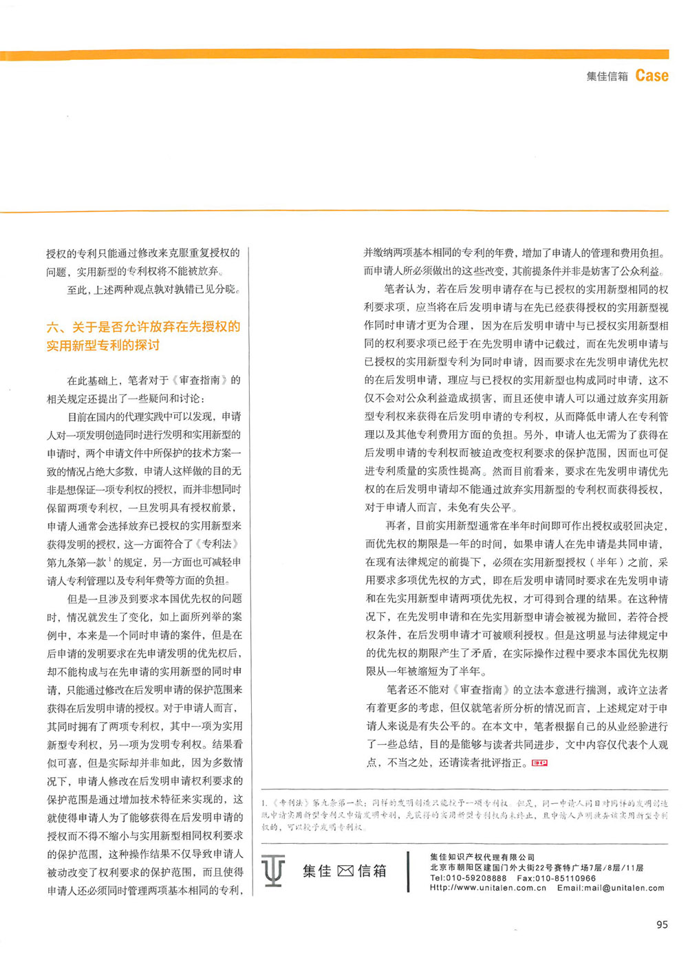 集佳代理人文章《論在先授權的實用新型與要求本國優先權的在后發明申請相關問題的處理》在《電子知識產權》發表