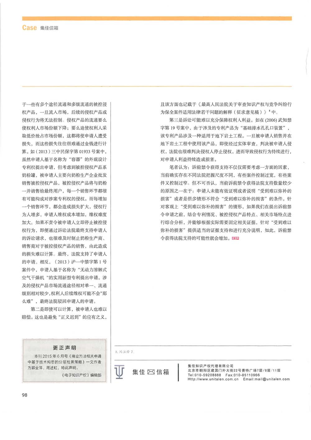 法律聲明 Unitalen Mail Box ?2016 Unitalen Attorneys at Law 版權(quán)所有 集佳知識(shí)產(chǎn)權(quán)代理有限公司 京ICP備11033076號(hào) 京公網(wǎng)安備11010502020670