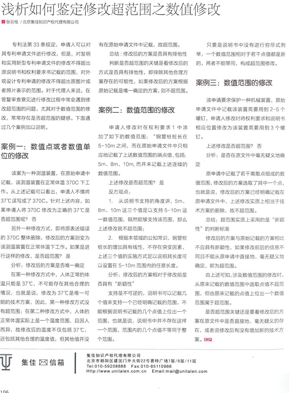集佳代理人撰文《淺析如何鑒定修改超范圍之數值修改》在《電子知識產權》發表