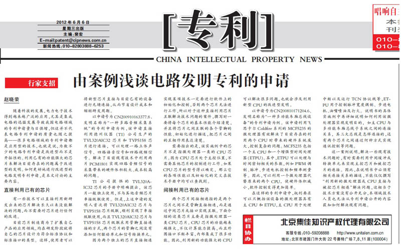 《中國(guó)知識(shí)產(chǎn)權(quán)報(bào)》:由案例淺談電路發(fā)明專利的申請(qǐng)