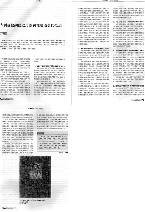 《中國發明與專利》:專利侵權糾紛適用懲罰性賠償責任概述