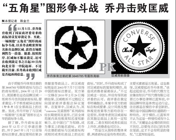 《海峽都市報》:“五角星”圖形爭斗戰 喬丹擊敗匡威
