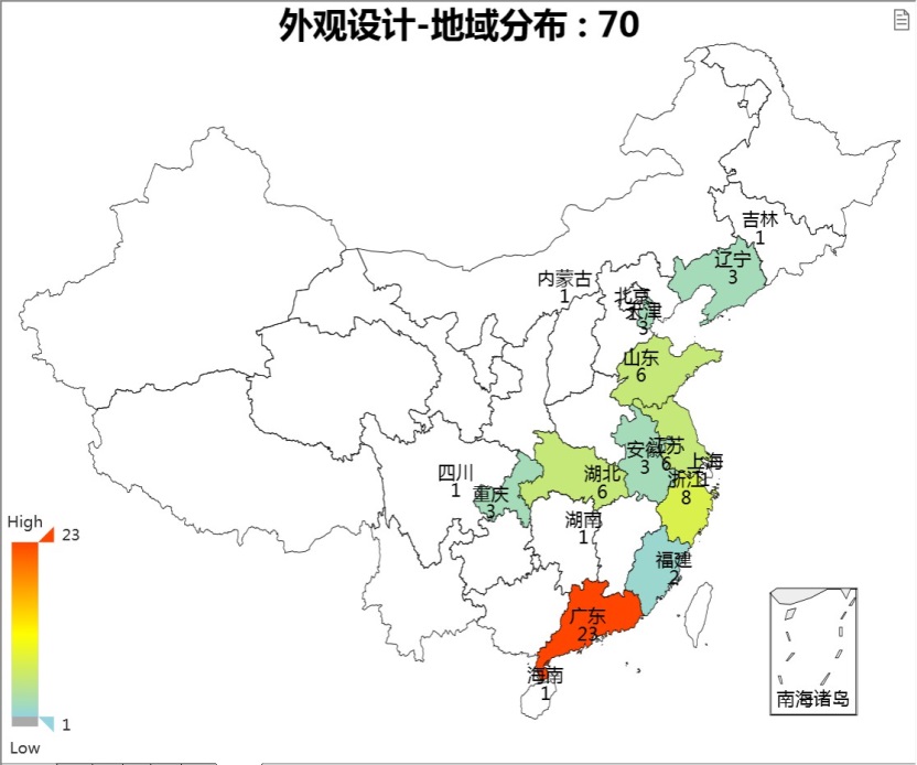 四、獲獎外觀設(shè)計集中在東部沿海地區(qū) 70件獲獎的外觀設(shè)計中,超過90%的獲獎外觀設(shè)計分布在廣東、浙江、福建、江蘇、上海、山東、北京、天津等東部沿海發(fā)達(dá)地區(qū)。這些地區(qū)的加工制造業(yè)發(fā)達(dá),工業(yè)設(shè)計實力強勁。