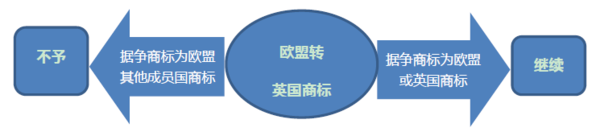 小結:對于轉化后的英國商標,若據爭商標是英國或者歐盟商標的,則案件繼續審理;若基于其他成員國的在先權利的,則將不予審理。此外,對于基于英國商標提出的歐盟異議和無效,歐盟將不予審理。