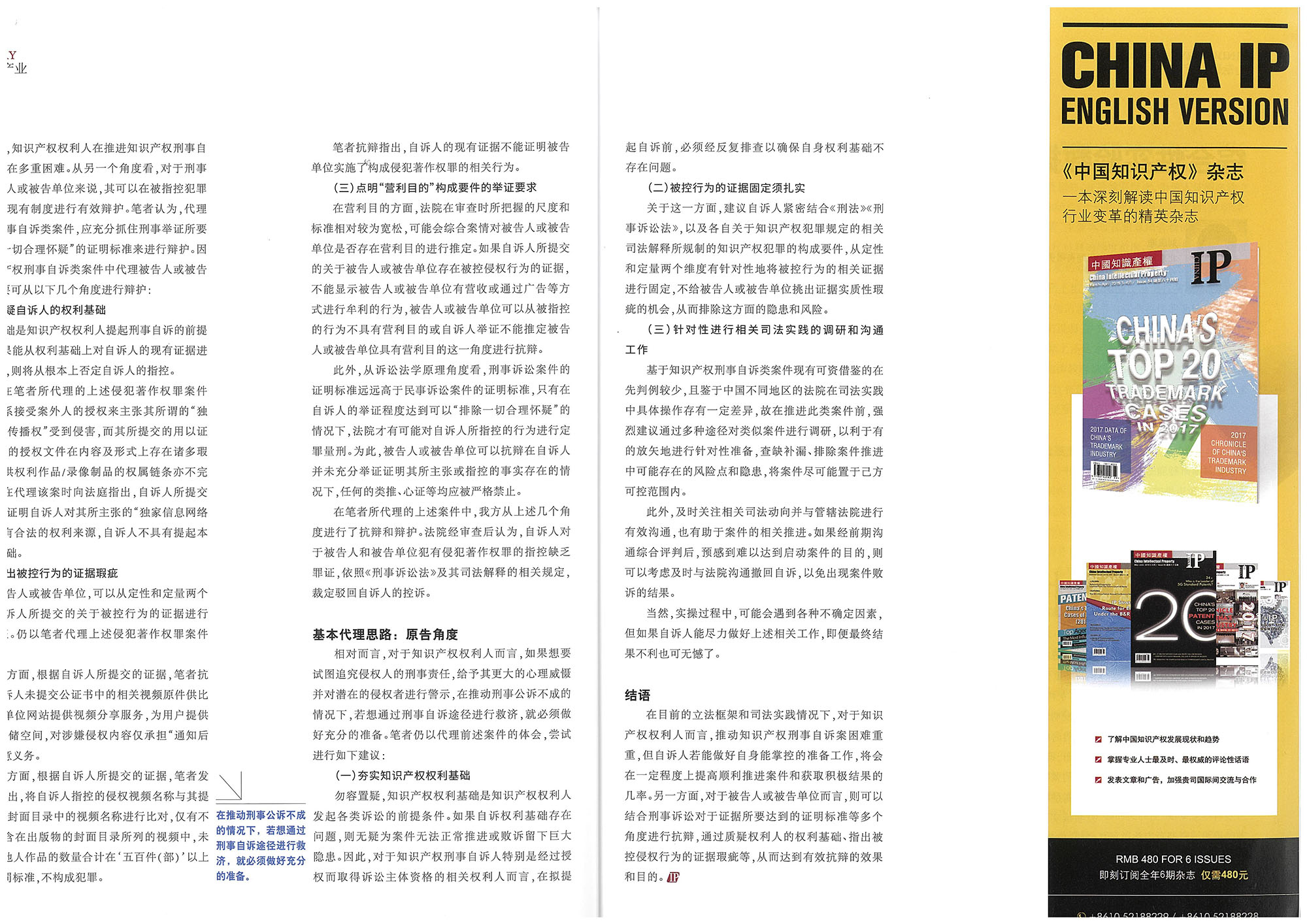 集佳文章《知識產(chǎn)權(quán)刑事自訴類案件基本代理思路—以侵犯著作權(quán)罪案件為例》在《中國知識產(chǎn)權(quán)》發(fā)表