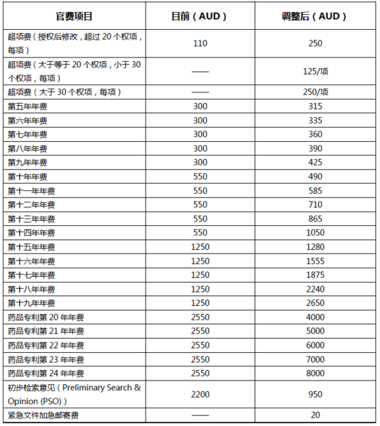 2020年10月1日起,澳大利亞知識產(chǎn)權(quán)局將上調(diào)專利、工業(yè)外觀設(shè)計及商標(biāo)的官費(僅有少部分費用有所下調(diào))。這次費用調(diào)整涉及了電子支付方式(“首選方式”)和通過“其他方式”支付兩種支付方式,在此主要列舉采用電子方式支付官費涉及的費用調(diào)整項目。