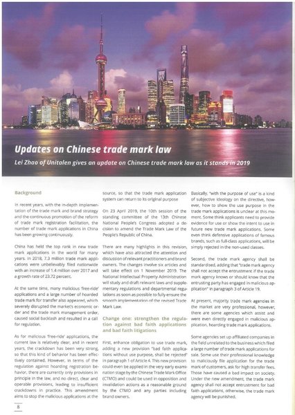 在年會(huì)上,趙雷律師與世界各國的知識(shí)產(chǎn)權(quán)界同仁探討了當(dāng)前熱點(diǎn)話題和商標(biāo)發(fā)展趨勢,同時(shí)也向參會(huì)代表分享了集佳近年來在國內(nèi)商標(biāo)領(lǐng)域及境外商標(biāo)實(shí)踐中取得的成績和獲得的經(jīng)驗(yàn),并與很多國家的代表建立了廣泛友好的業(yè)務(wù)聯(lián)系。會(huì)議期間,趙雷律師應(yīng)邀撰寫的文章《Updates on Chinese trade mark law》在年會(huì)專刊《ECTA Daily》發(fā)表,受到了業(yè)界同仁的好評(píng)。