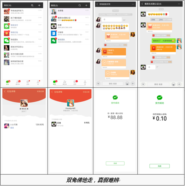 近年來,移動應用市場上出現一系列以智能生成騰訊微信軟件界面截圖為功能賣點的移動應用。此種應用復制微信各功能界面的美術素材并提供相應的編輯模塊,使其使用者可通過編輯數據內容快速、大量生成包括微信對話記錄、微信紅包記錄、微信支付記錄等多種虛假微信截圖。