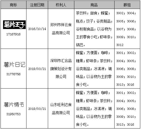 最后,如在先已有眾多包含“薯片”的商標(biāo)在第30類商品上被核準(zhǔn)注冊,如“薯片王子”、“薯片日記”、“薯片情書”等。可知,根據(jù)審查一致性原則,含有中文“巧克力”的商標(biāo)也同樣應(yīng)被核準(zhǔn)注冊在除“巧克力”等之外的商品上,何況申請商標(biāo)中的“CHOCOLATE”并不會(huì)使相關(guān)公眾將其翻譯為中文“巧克力”再加以識別或認(rèn)讀,因此根本不會(huì)對其原料口味等特點(diǎn)產(chǎn)生誤認(rèn)。