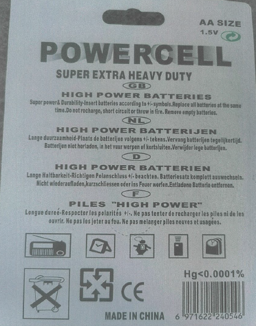 The battery sold by the defendant used the combination of copper and black colors in its battery, and the length ratio of the colors, which is about one-third of copper, two-thirds of black, and the copper is on the side of anode, the black is on cathode; it’s almost the same as the color combination trademark of Duracell. In addition, the battery labeled with "POWERCELL" wording and the text is in white font in black shade, as shown below.