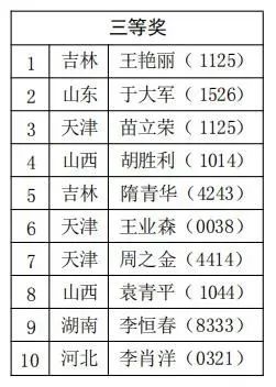 2022年4月1日,2021“集佳杯”中國公眾知識產(chǎn)權(quán)知識競賽抽獎儀式在北京舉行。經(jīng)北京國信公證處公證,現(xiàn)場共抽出一等獎3名、二等獎6名、三等獎20名和優(yōu)秀獎150名,現(xiàn)將名單予以公示。請中獎?wù)哂?022年7月31日前聯(lián)系報社通聯(lián)發(fā)行部(010-82034385)領(lǐng)獎。