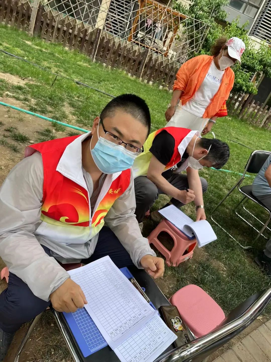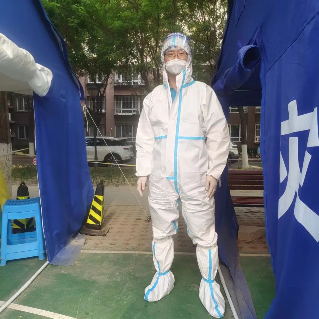 訴訟部的張亮化身 “大白”,為居民登記核酸檢測(cè)信息、維持現(xiàn)場(chǎng)秩序、檢查健康碼。