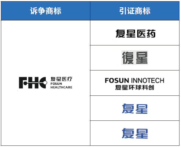 ”雖然和各引證商標均包含“復星”,但訴爭商標中包含多種構成要素,中文部分整體為“復星醫療”,再加上其英文部分“FOSUN HEALTHCARE+FHG”,從而在商標的整體外觀、呼叫以及含義上均和各引證商標產生了一定的差異,降低了混淆的可能性。