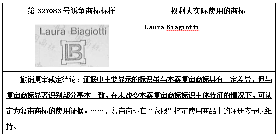 本案的亮點一,在于從行政階段到法院訴訟階段,國知局、一審法院、二審法院均對權利人對訴爭商標在使用方式上的輕微改變仍認可為有效使用證據,即“對訴爭商標未改變顯著特征的使用”