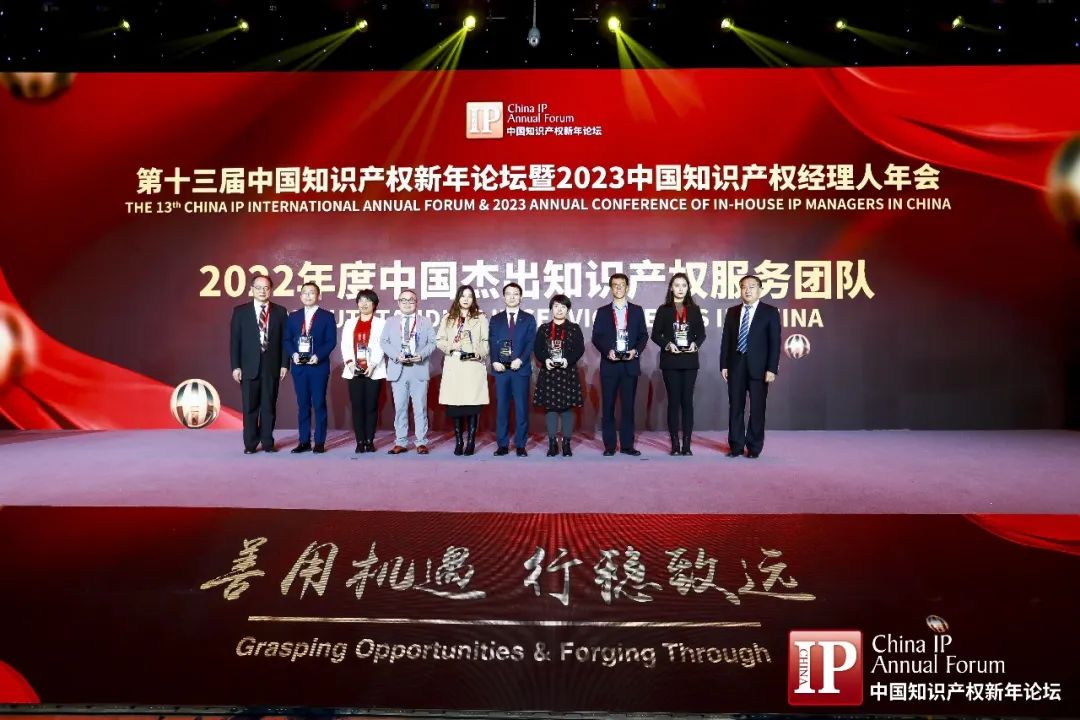 2月11日,“第十三屆中國知識(shí)產(chǎn)權(quán)新年論壇暨2023中國知識(shí)產(chǎn)權(quán)經(jīng)理人年會(huì)”及頒獎(jiǎng)盛典在北京盛大開幕。集佳知識(shí)產(chǎn)權(quán)憑借精湛的業(yè)務(wù)能力、卓越的專業(yè)實(shí)力及出眾的團(tuán)隊(duì)凝聚力蟬聯(lián)2022年度“中國杰出知識(shí)產(chǎn)權(quán)服務(wù)團(tuán)隊(duì)”獎(jiǎng)項(xiàng)。合伙人王秀青女士代表集佳出席盛會(huì)并領(lǐng)獎(jiǎng)。