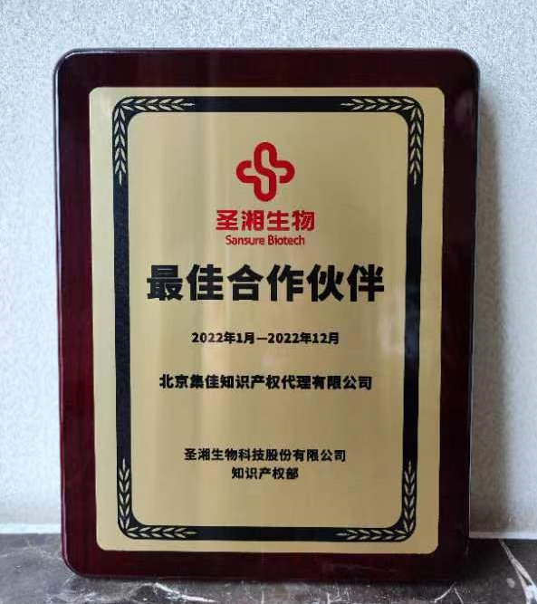 近日,集佳優質服務再次喜獲客戶點贊——圣湘生物科技股份有限公司授予集佳2022年度“最佳合作伙伴”榮譽稱號。