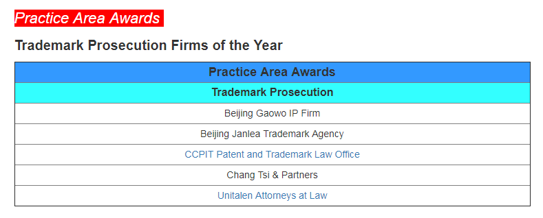 Asia IP專注于亞太地區(qū)知識產(chǎn)權(quán)領(lǐng)域的動態(tài)與發(fā)展,在業(yè)內(nèi)具有非常高的權(quán)威性。Asia IP每年通過問卷調(diào)查、核心客戶咨詢等方式匯集世界各地知識產(chǎn)權(quán)專業(yè)人士的反饋和建議,并最終評選出亞太地區(qū)年度領(lǐng)先的優(yōu)秀知識產(chǎn)權(quán)事務(wù)所及頂級專家,其評選結(jié)果對企業(yè)在亞太地區(qū)開展知識產(chǎn)權(quán)事務(wù)具有重要的參考和指導(dǎo)意義。