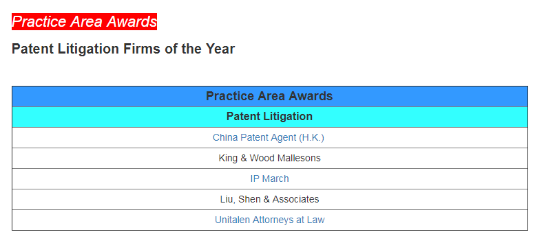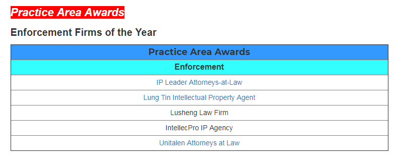 Recently, the international authoritative intellectual property media "Asia IP" released the list of winners of the 2023 China IP Awards. With the outstanding performance, industry reputation, and market evaluation in the field of intellectual property business, Unitalen has been listed on the four recommendation lists of "Trademark Prosecution", "Patent Prosecution", "Patent Litigation", and "Enforcement Firms of the Year", and won the award "Regional Firms of the Year (Beijing)" consecutively!