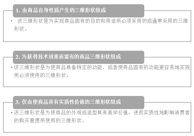 學理上的分類對于判斷三維標志的功能性有所參考價值,但在現實考慮中仍需側重于理解《商標法》及《商標審查審理指南》相關具體規定。
