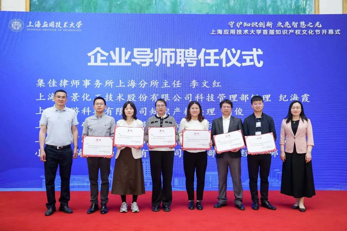 開(kāi)幕式上,上海應(yīng)用技術(shù)大學(xué)舉行了企業(yè)導(dǎo)師聘任儀式,李文紅博士等6位來(lái)自代理機(jī)構(gòu)與創(chuàng)新企業(yè)的知識(shí)產(chǎn)權(quán)領(lǐng)域?qū)<沂芷笧楣こ坦芾韺I(yè)碩士生企業(yè)導(dǎo)師,進(jìn)一步深化校企合作與產(chǎn)學(xué)研聯(lián)合培養(yǎng)。