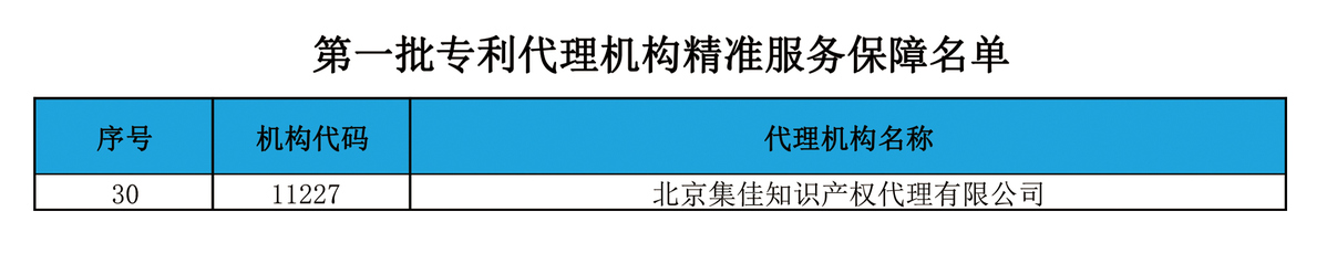 近日,中華全國專利代理師協會發布第一批專利代理機構精準服務保障名單,北京集佳知識產權代理有限公司憑借穩健的綜合實力、優質的專業服務和良好的業界聲譽,成為首批入選的知識產權服務機構。